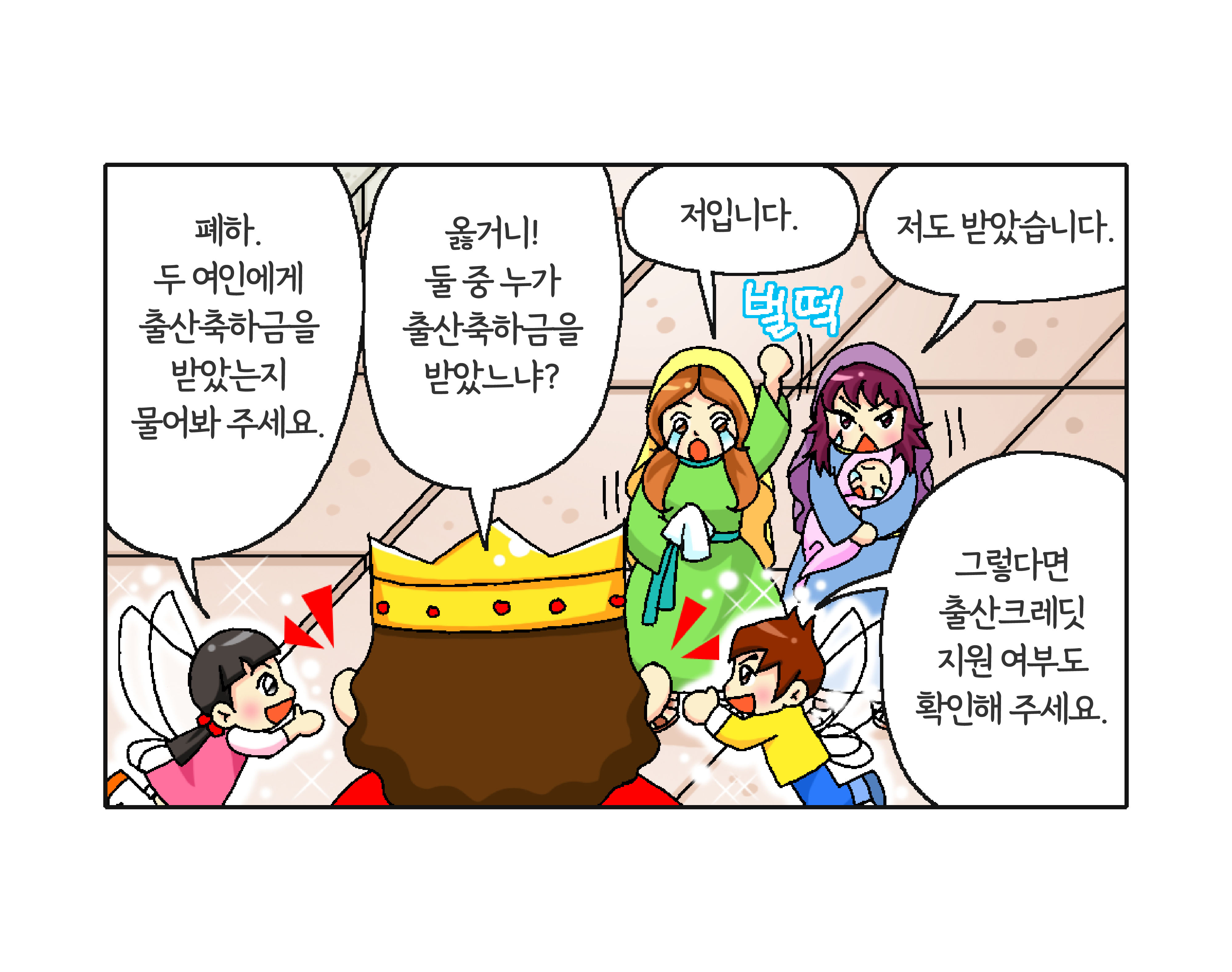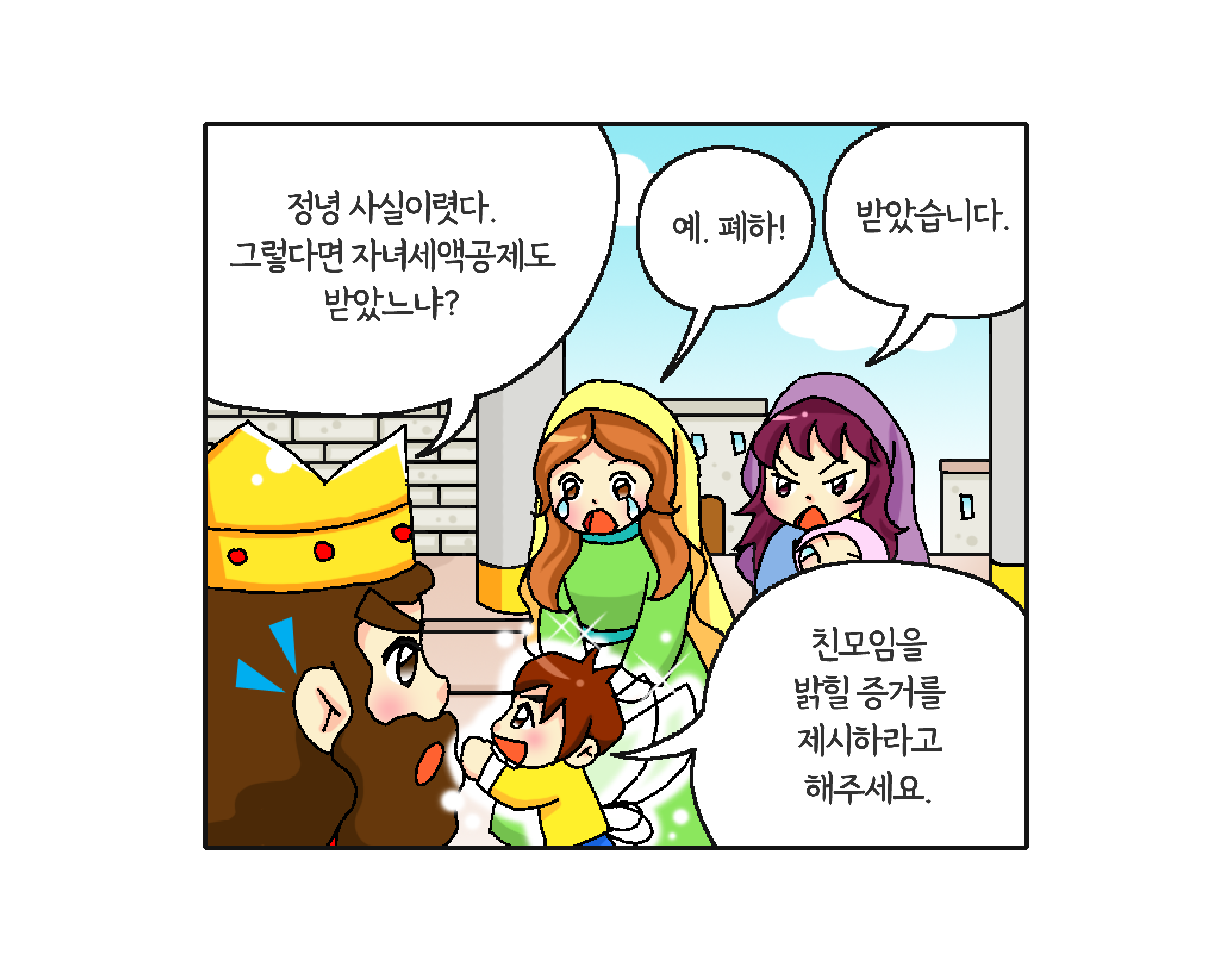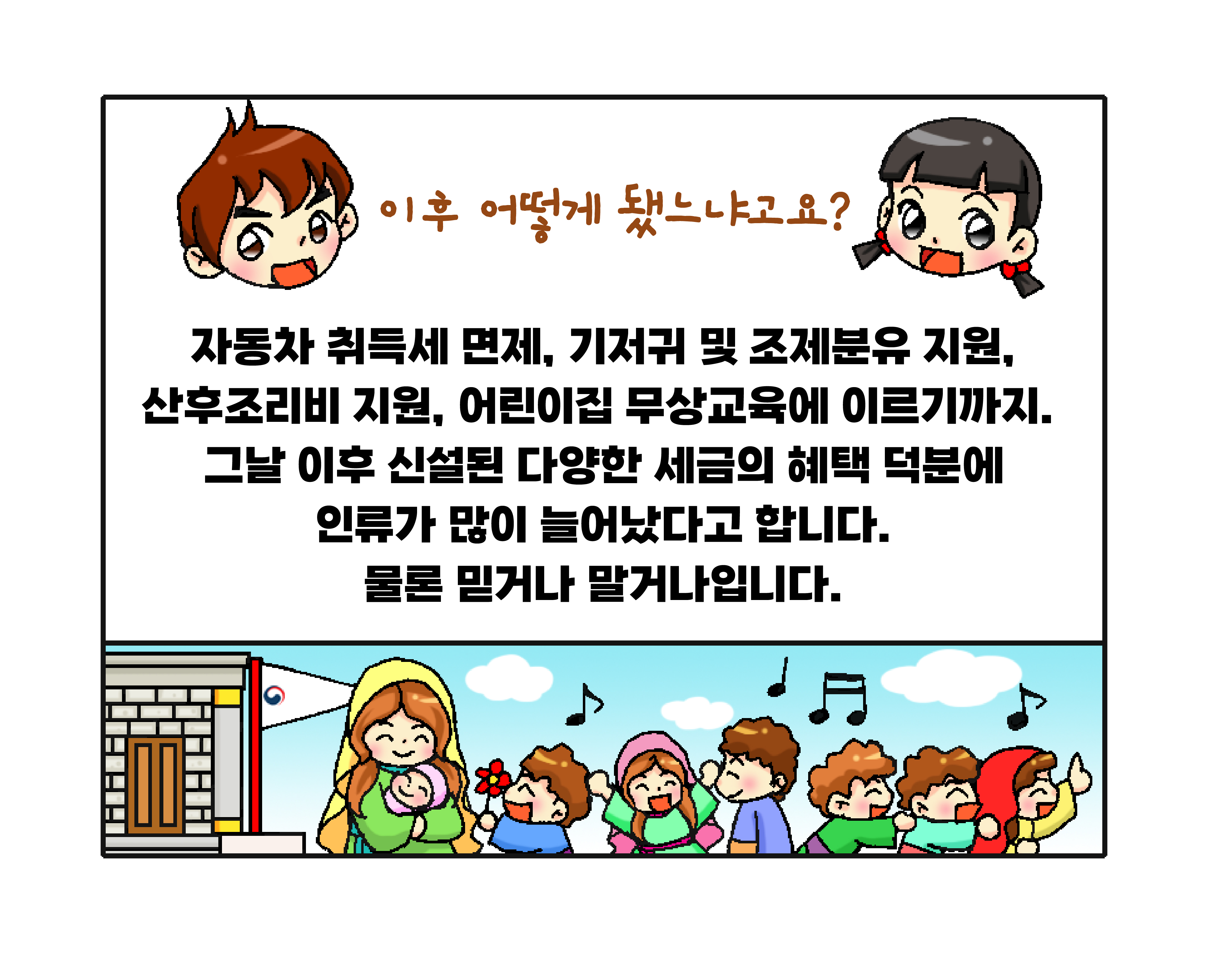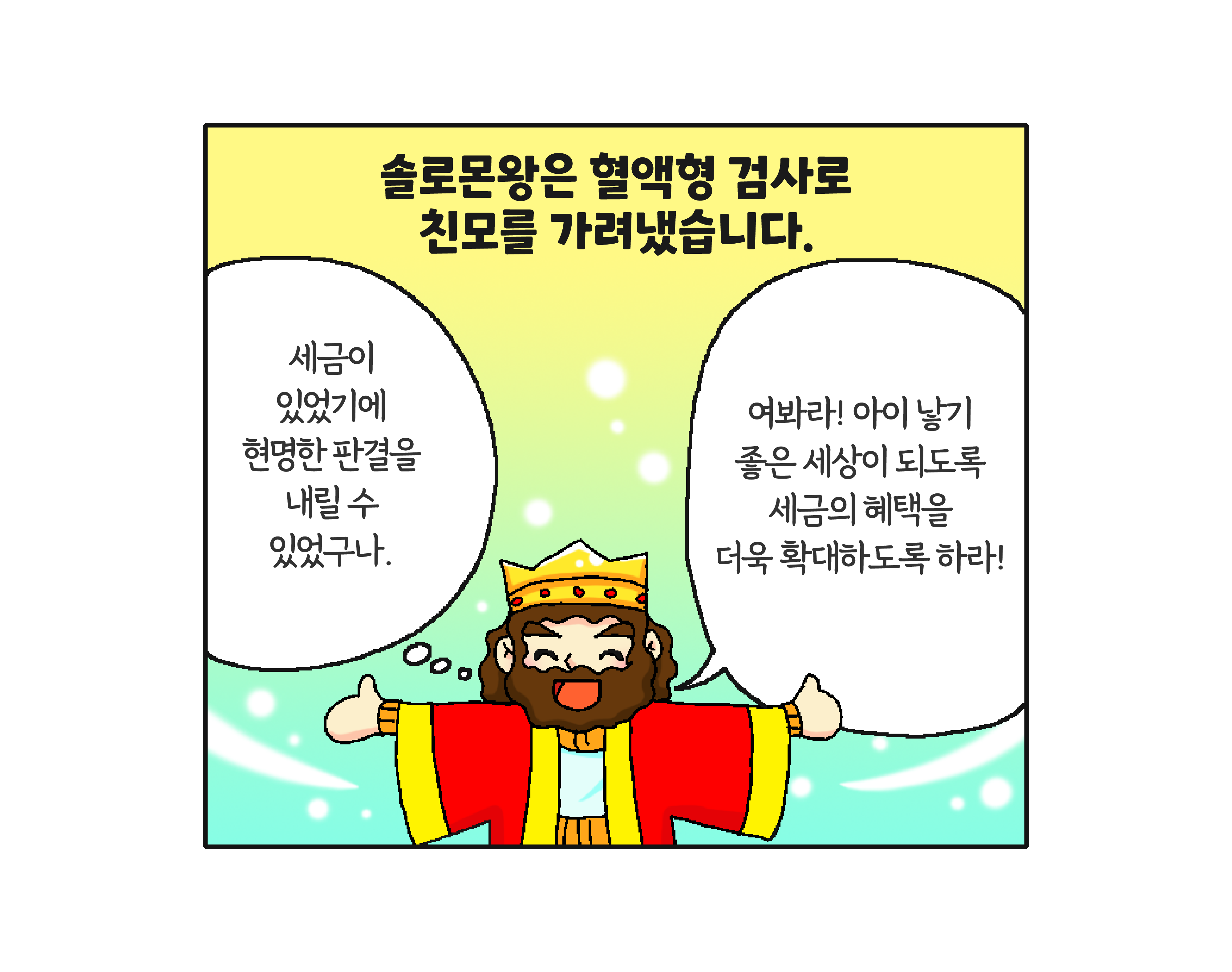 세금이 아이 낳기 좋은 세상을 만듭니다! 작성자 정보 국세청어린이신문 작성 작성일 2025.09.26 22:49 컨텐츠 정보 42 조회 목록 본문 솔로몬왕이 진짜 엄마를 밝혀낸 방법은? 관련자료 등록된 댓글이 없습니다. 로그인한 회원만 댓글 등록이 가능합니다. 목록