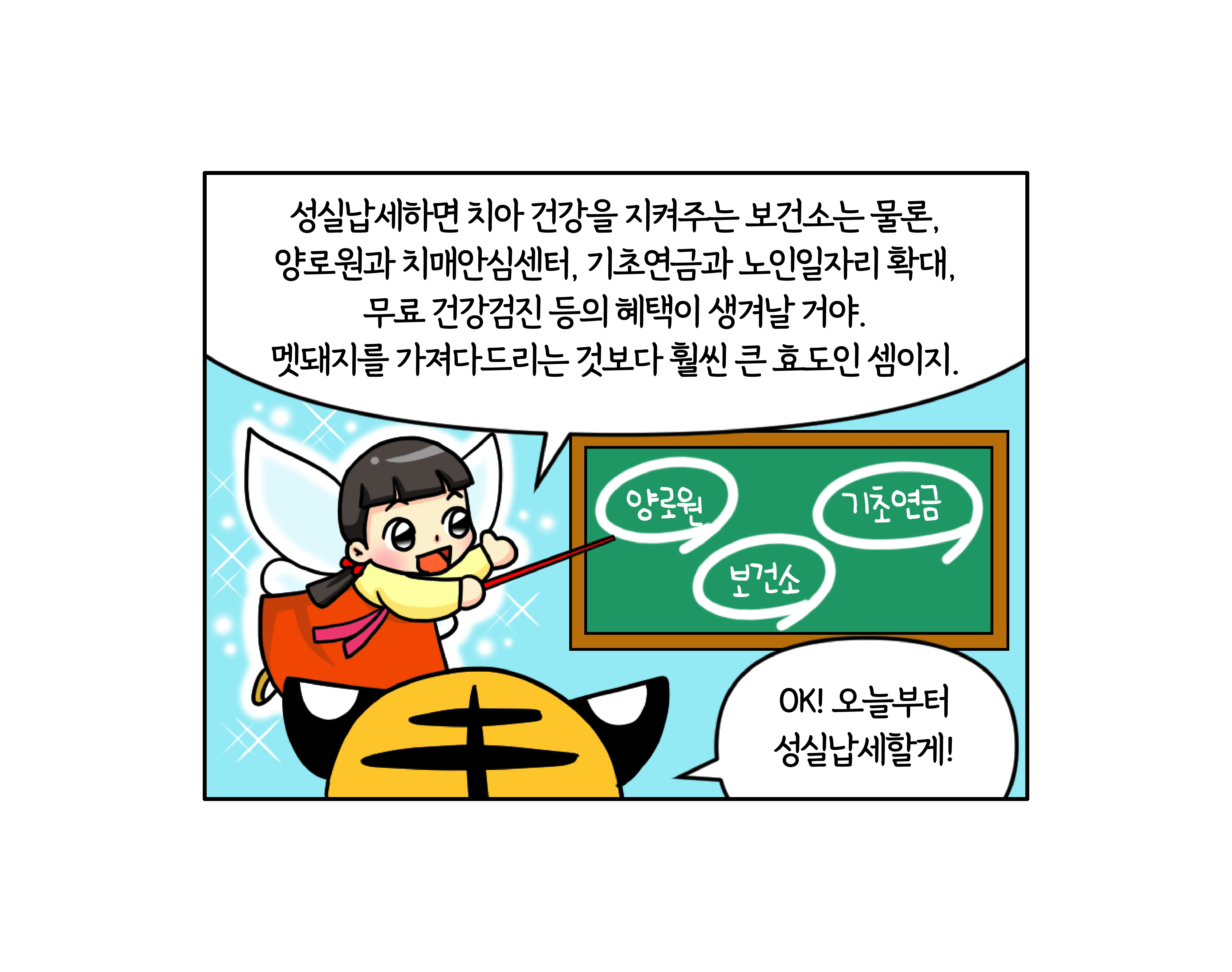 세금은 더 큰 혜택으로 돌아옵니다! 작성자 정보 국세청어린이신문 작성 작성일 2026.04.16 10:51 컨텐츠 정보 45 조회 목록 본문 호랑이가 성실납세한 결정적 이유는? 관련자료 등록된 댓글이 없습니다. 로그인한 회원만 댓글 등록이 가능합니다. 목록