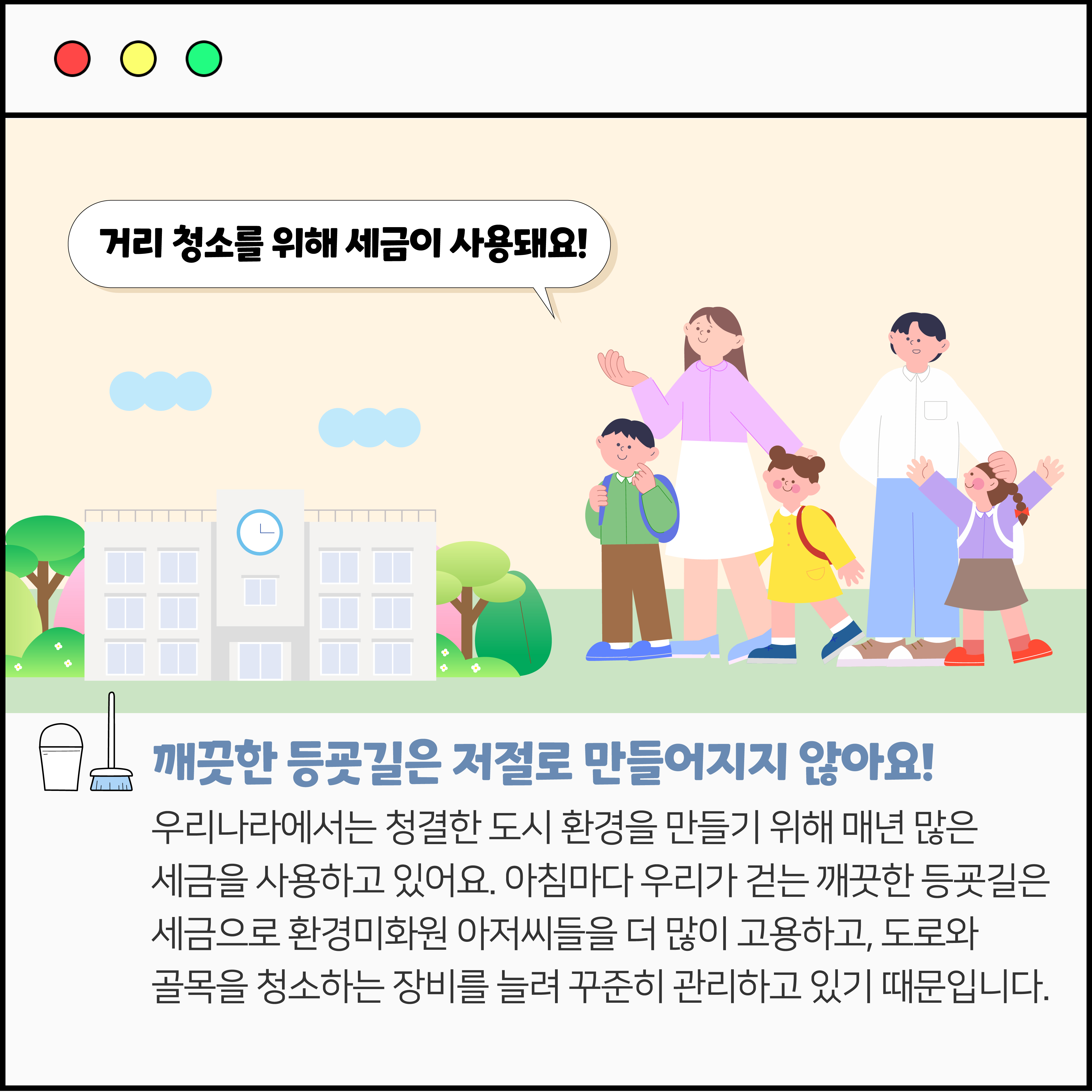 OO이 우리 집 앞을 깨끗하게 지켜줘요! 작성자 정보 국세청어린이신문 작성 작성일 2026.02.04 22:50 컨텐츠 정보 93 조회 목록 본문 그 많던 쓰레기는 누가 치웠을까요? 관련자료 등록된 댓글이 없습니다. 로그인한 회원만 댓글 등록이 가능합니다. 목록