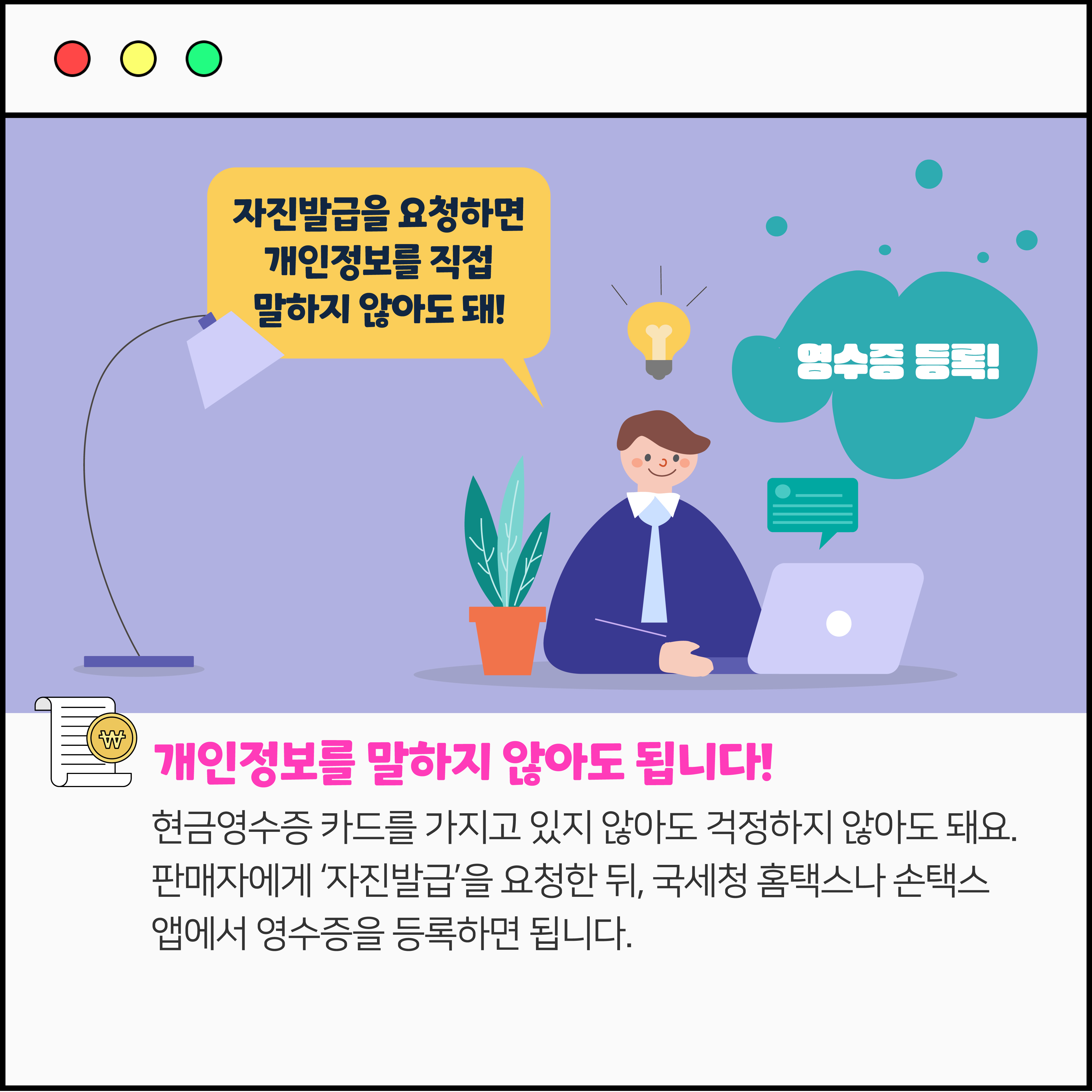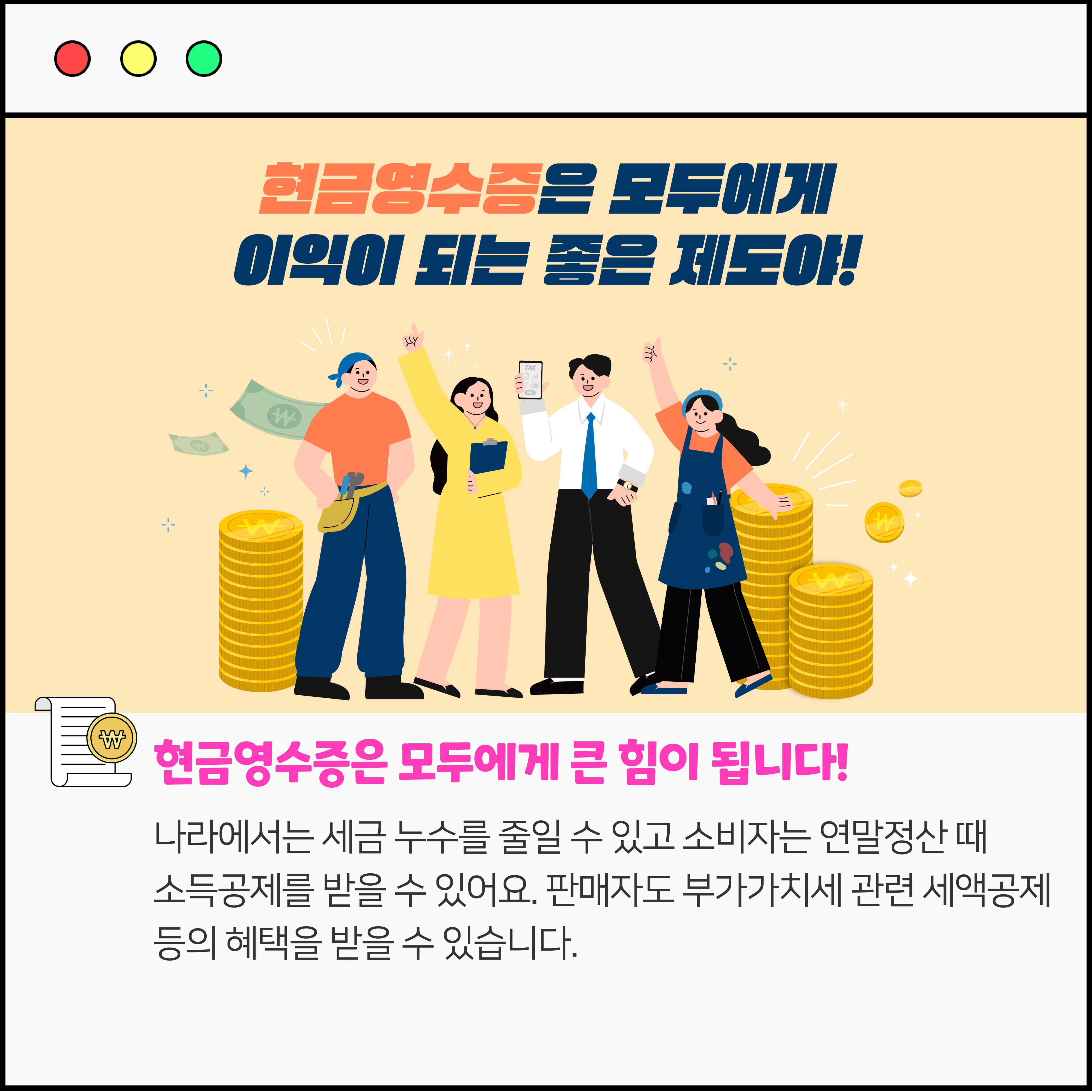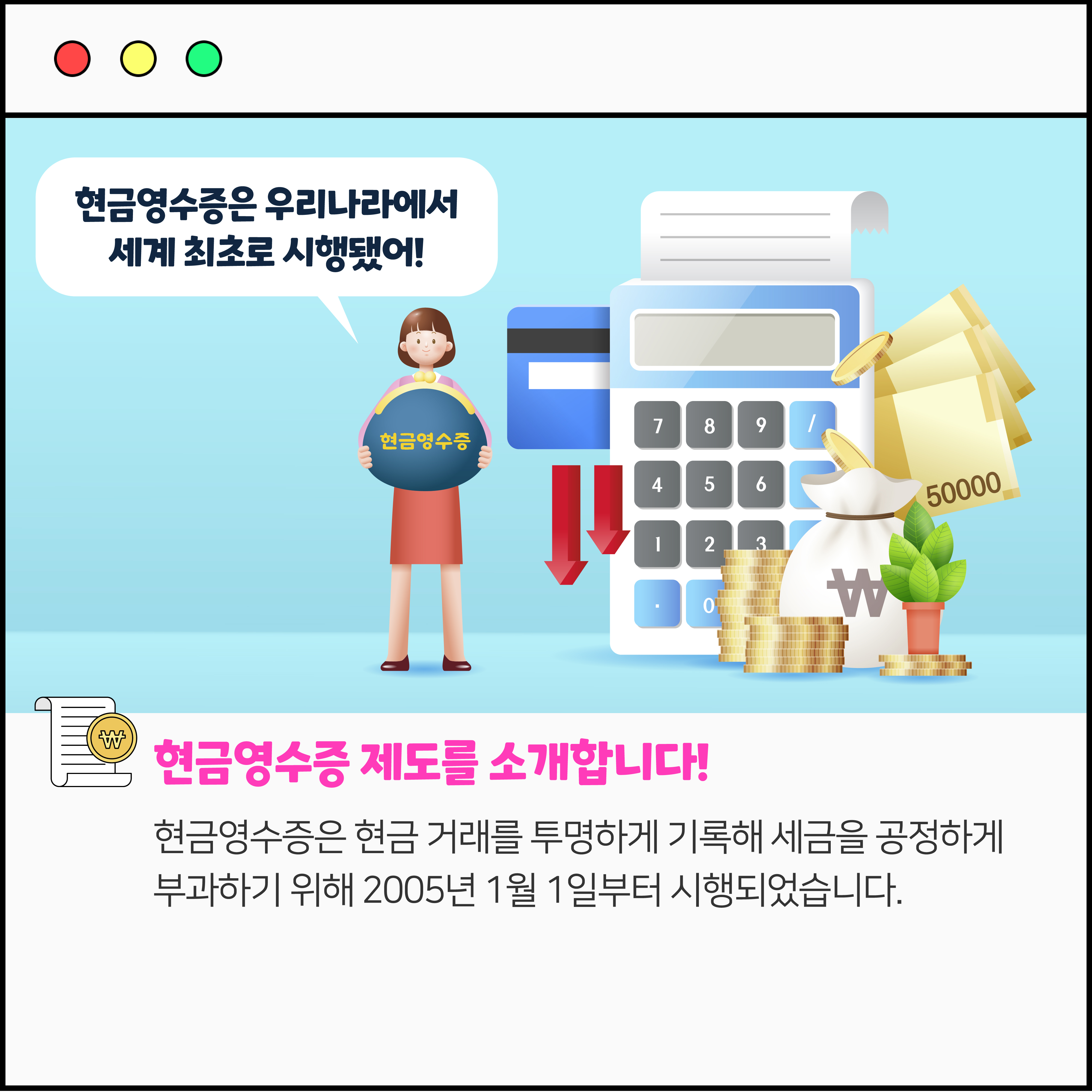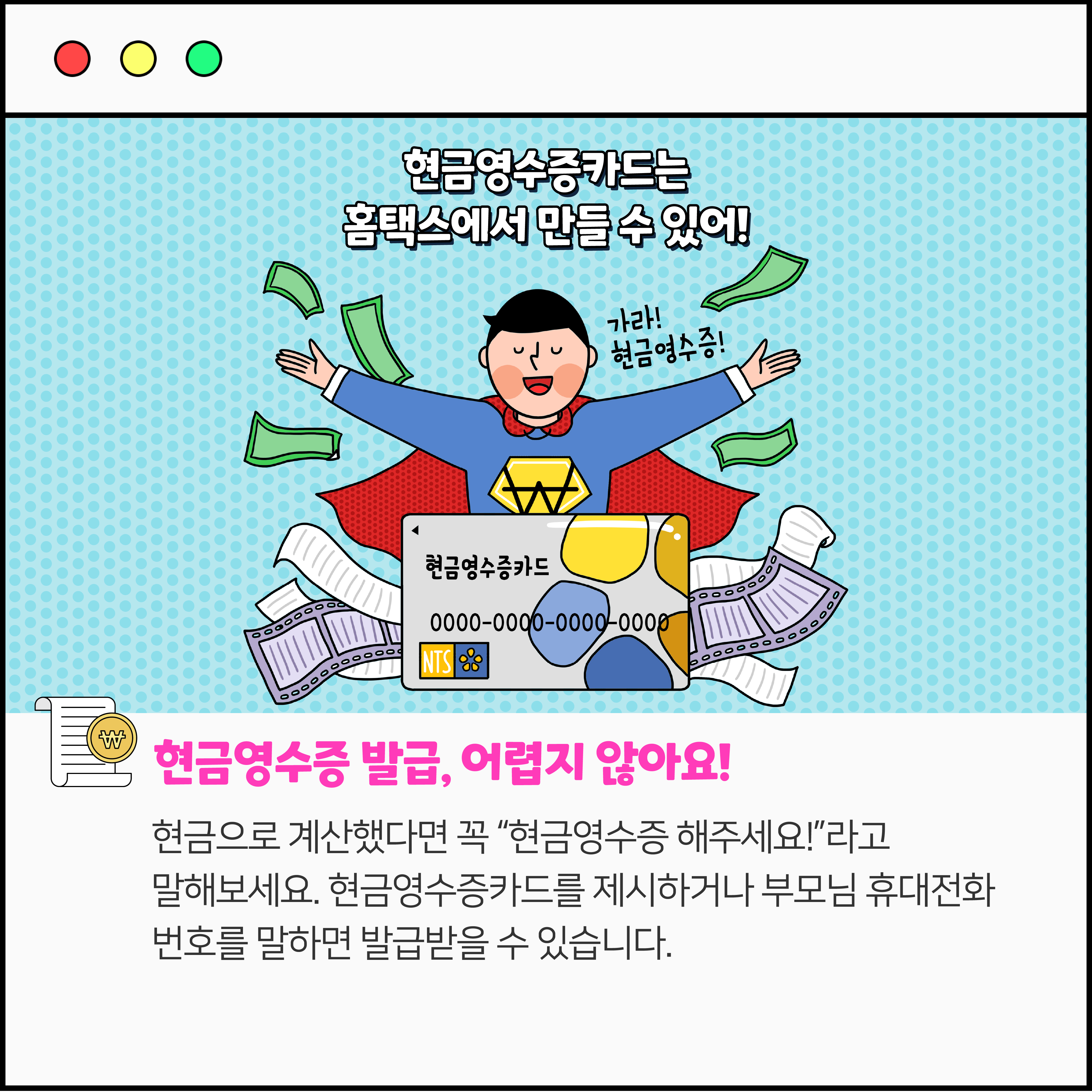 OO영수증 해주세요! 작성자 정보 국세청어린이신문 작성 작성일 2026.04.07 11:38 컨텐츠 정보 75 조회 목록 본문 현금으로 계산할 때 꼭 해야 하는 말! 관련자료 등록된 댓글이 없습니다. 로그인한 회원만 댓글 등록이 가능합니다. 목록